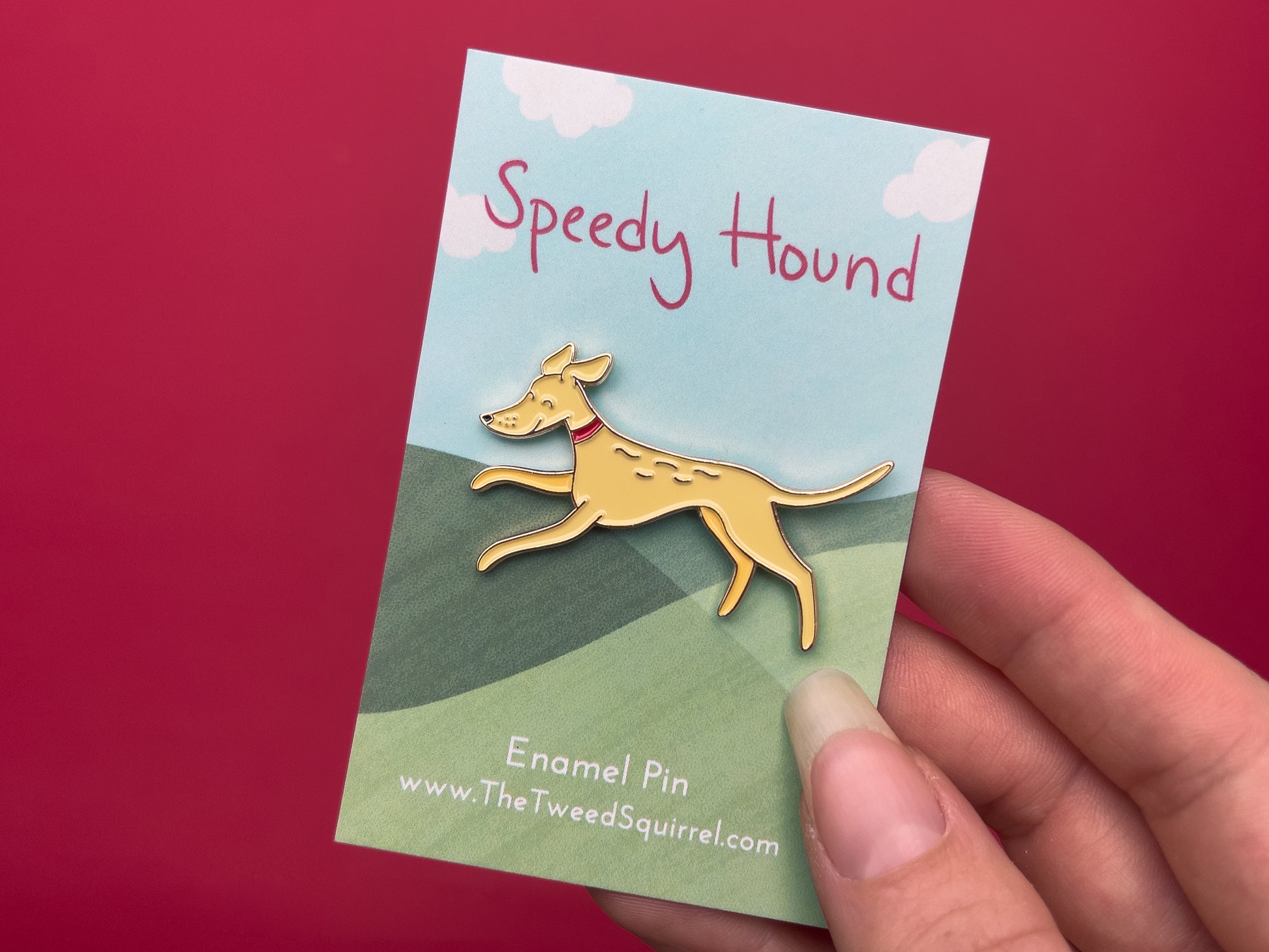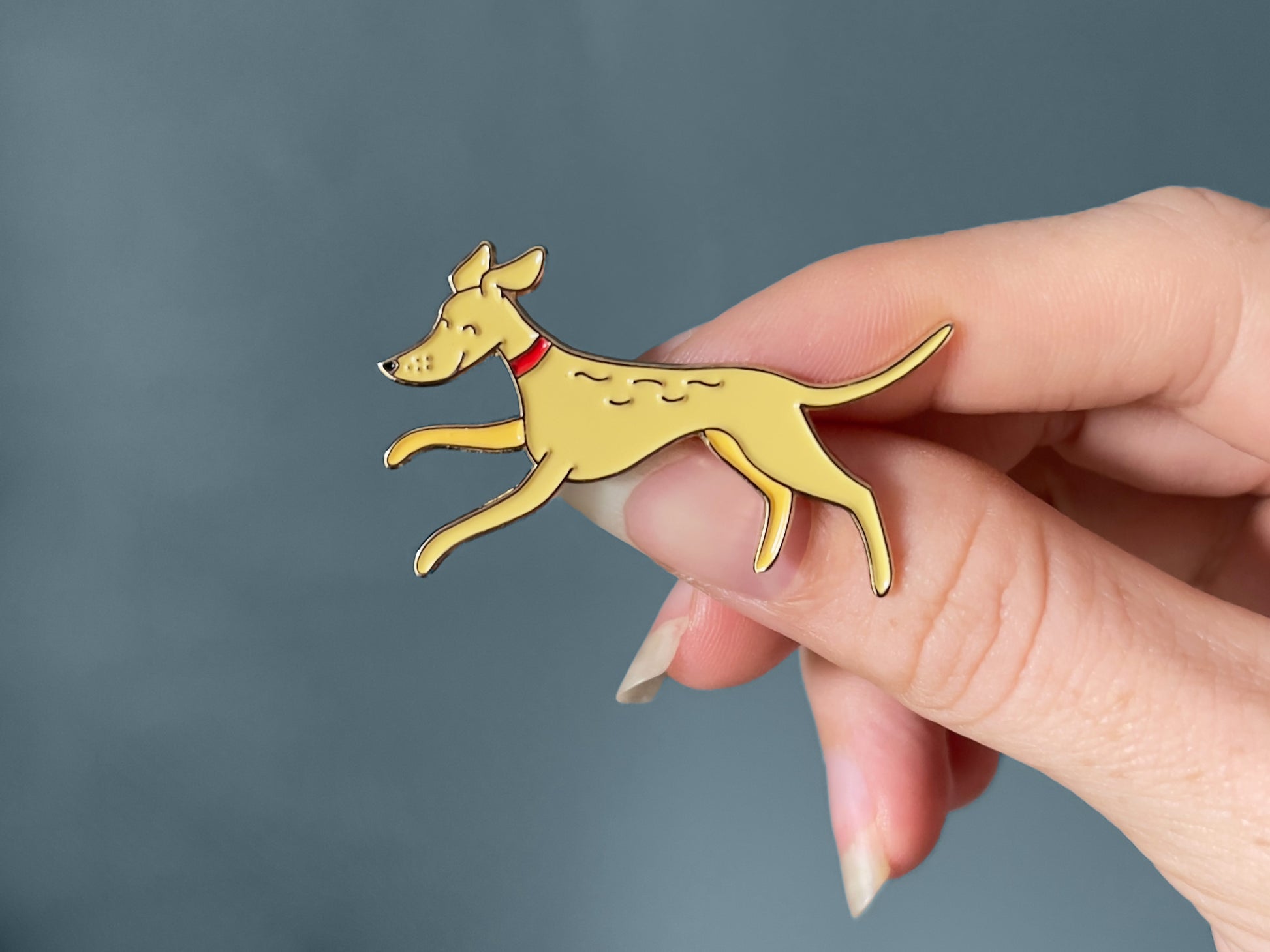 Put this speedy hound enamel pin on your coat, purse or backpack for a charming accent. It makes the perfect gift or stocking stuffer for the dog lover in your life!