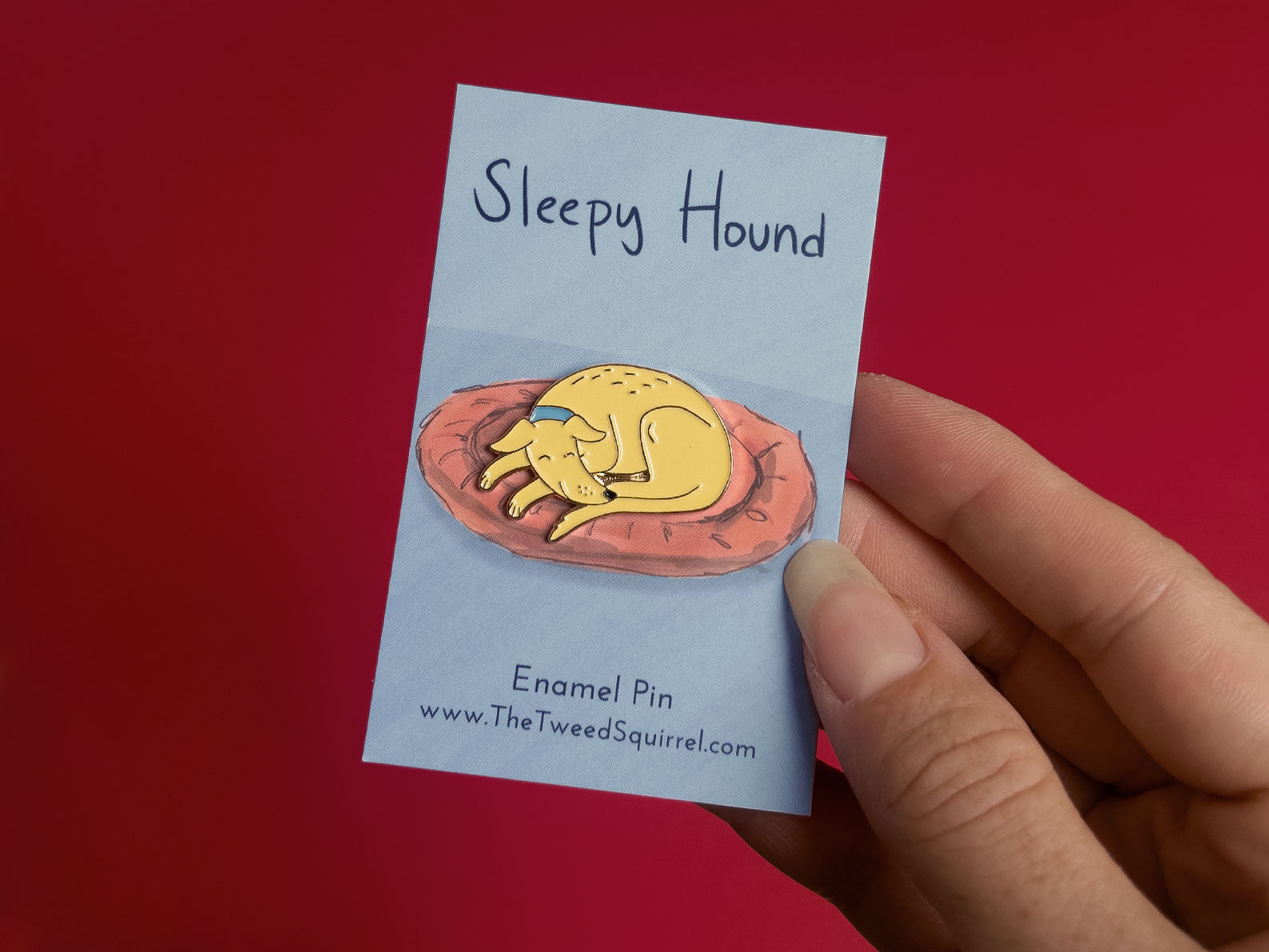 Does your hound spend most of their time snoozing? Mine certainly does! Take a tiny version of your sleepy hound wherever you go with this charming enamel pin.